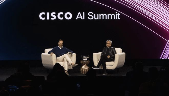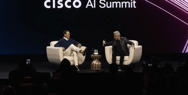 刚结束中国之行、甚至还没来得及倒时差的英伟达CEO黄仁勋,坐在了思科CEO查克·罗宾斯(Chuck Robbins)对面。