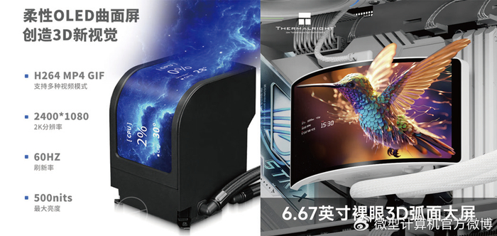 2025年,曲面屏取代传统直面屏成为水冷散热器的一大创新方向,依托OLED屏幕良好的可弯曲性与塑形能力,形成90度弯曲、扇形曲面两大主流形态。这两类产品精准定位年轻DIY用户、电竞玩家对整机颜值统一性与个性化的追求,同时还能满足高端玩家对硬件状态实时监控的需求。