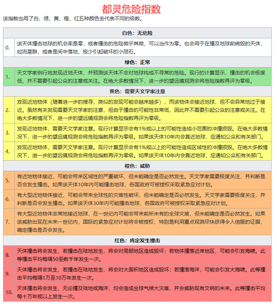 巴勒莫撞击危险指数:*(大于-2时,需要注意);