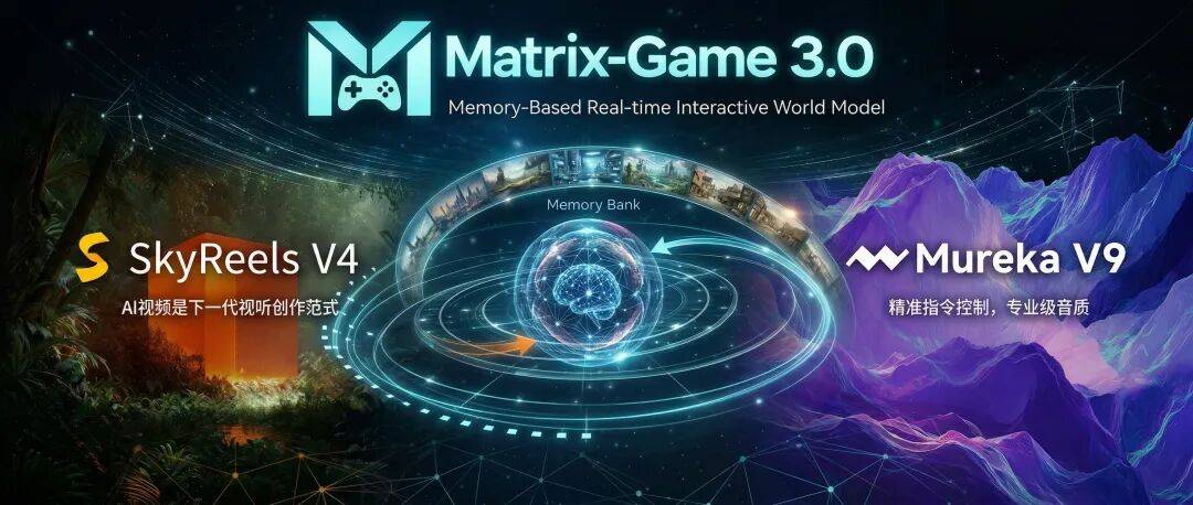 游戏世界模型Matrix-Game 3.0、视频大模型SkyReels V4、音乐大模型Mureka V9同时登场,全部杀入世界第一梯队。