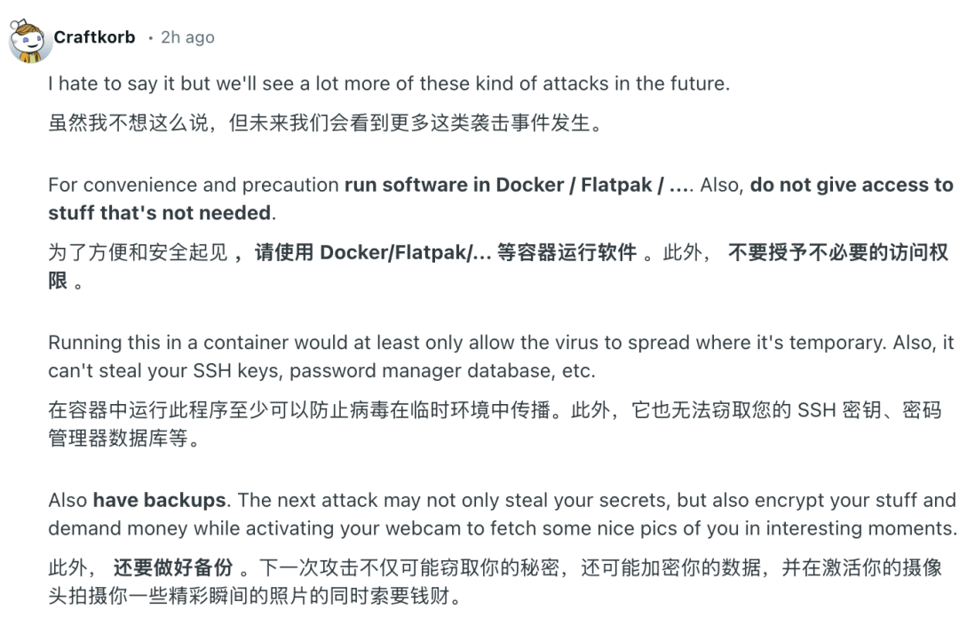 也有部分网友表示,未来类似的供应链攻击将成为新常态,针对开发工具的供应链安全需要尽快提上日程。