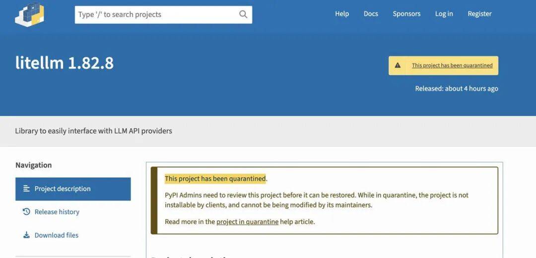 最新上传的LiteLLMPython 版本1.82.7和1.82.8,已被人为恶意植入信息窃取程序。