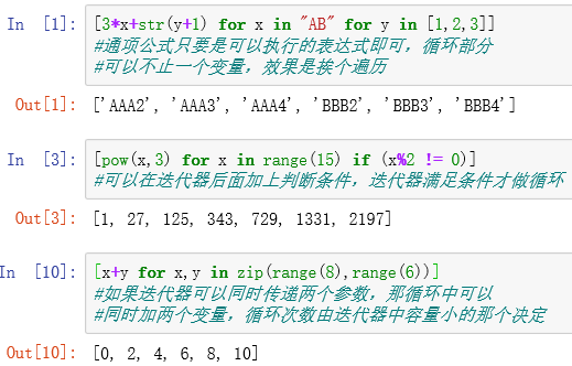 可以看出: ① 推导式中的分支结构,用 【A if BOOL else B for i in ITERABLE】 ② 推导式中筛选输入数据,用【A for i in ITERABLE if CONDITION】 ③ 合并range(),用【itertools.chain(a,b) 】先import itertools ④ 一行式是Python中特有的简单的书写方式,很好用