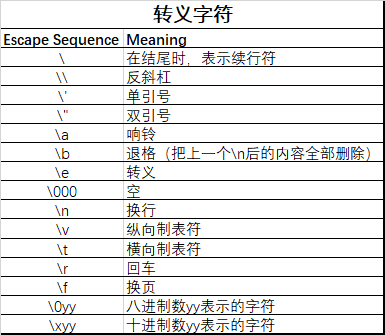 ①把原字符转换成别的意思,如n是一个字母,\n就代表了换行符(重启一行);②把含有别的意思的字符转换成本来的意思,如果我就需要写\n而不是换行符,将反斜杠转换成原来的意思,即\n。 可以用转义字符完成一些功能,可见下表: