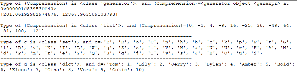 【小括号是生成器推导式,中括号是列表推导式,大括号(键值对)是字典推导式,大括号(键)是集合推导式】 举例而言: