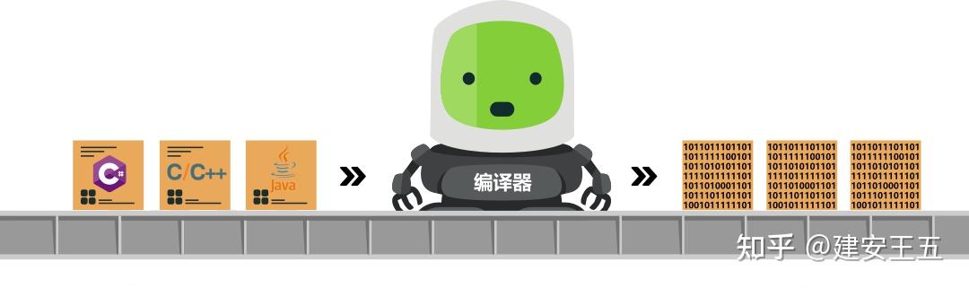 需要注意的是,使用这些语言编写的程序,计算机是无法直接执行的,而是需要通过 编译器 转化为二进制的机器指令,才能够执行。