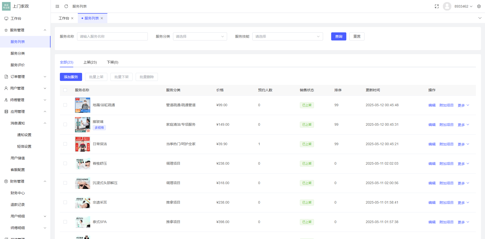 为了保障平台的高效运转,上门家政提供了功能强大的后台管理系统,方便管理员进行各项操作。