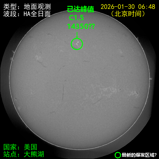当前【06时48分】级别为C1.3级,小耀斑还在继续上升中,需等待最大值的监测结果…………