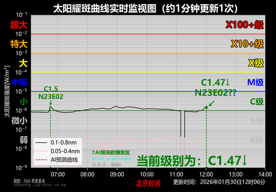 此时,耀斑强度继续上升中,需等待最大值的监测结果…