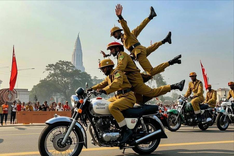 不过,对于印度而言,似乎这一切并不重要。毕竟,这场共和国日阅兵式就是印度向外界展示自己强大实力的一个平台,不管这些武器是买来的还是租来的,真假如何,到了印度手中,都是自己的。整个阅兵式中,唯一能称得上是印度制造的,恐怕只有摩托车叠罗汉的表演和动物编队了。摩托车特技表演已经是印度阅兵的常规项目,几乎年年都会上演,借此展现强大实力。至于动物编队,更是引人注目。这些动物包括双峰骆驼、山地矮种马、猛禽以及多种本土犬类,这是首次出现在印度的阅兵式上,十分引人关注。
