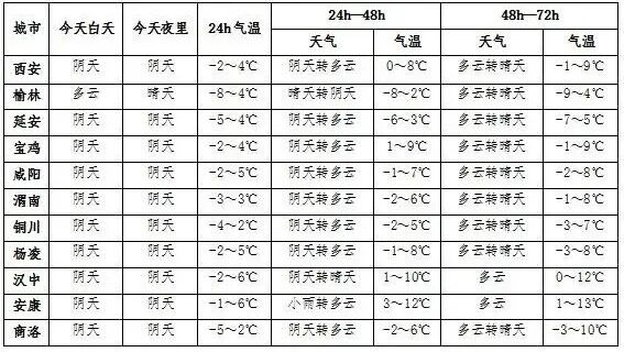 未来3天陕西主要城市天气预报