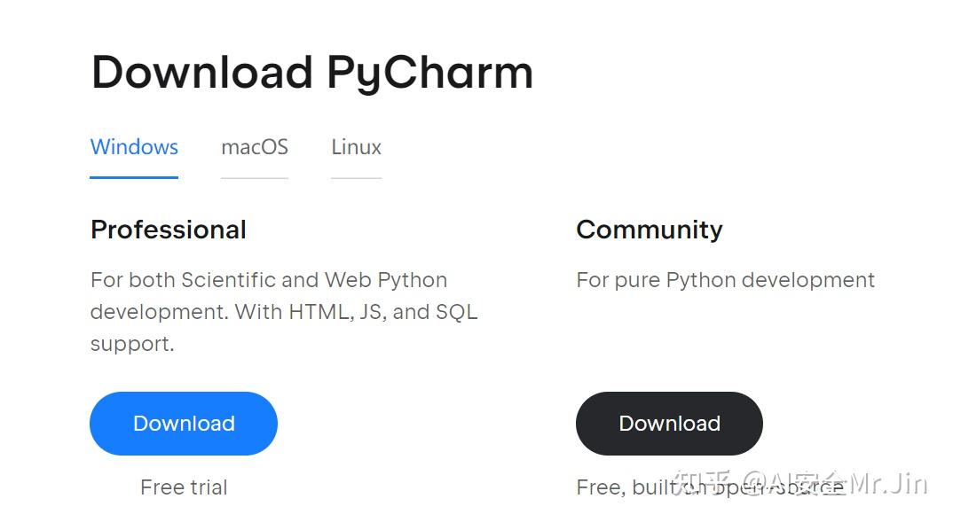 古人云:工欲善其事,必先利其器。用文本编辑器写代码终归不是那么方便,在这里建议您安装一个可视化代码编辑器 —— Pycharm(Download PyCharm: Python IDE for Professional Developers by JetBrains)