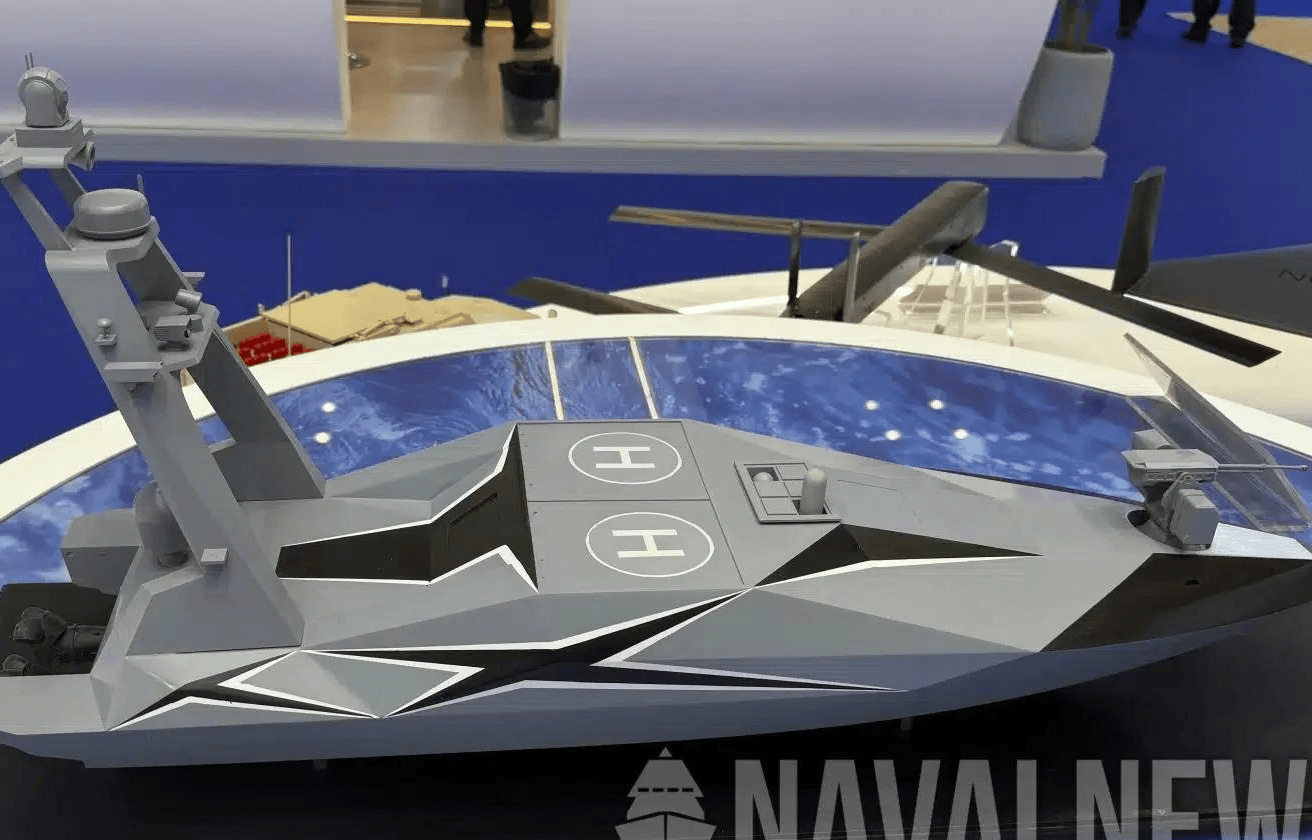 在2026年阿布扎比海上防务展上,中国一家企业展示了一款名为“UB1”无人水面作战艇,代号“锐鲨10”公开亮相。从设计上看,采用模块化设计、多任务能力与先进自主技术,艇身中部设计成了无人机起降甲板,上面有两个无人机起降位,让其变成了“微型小航母”,相当有特色。