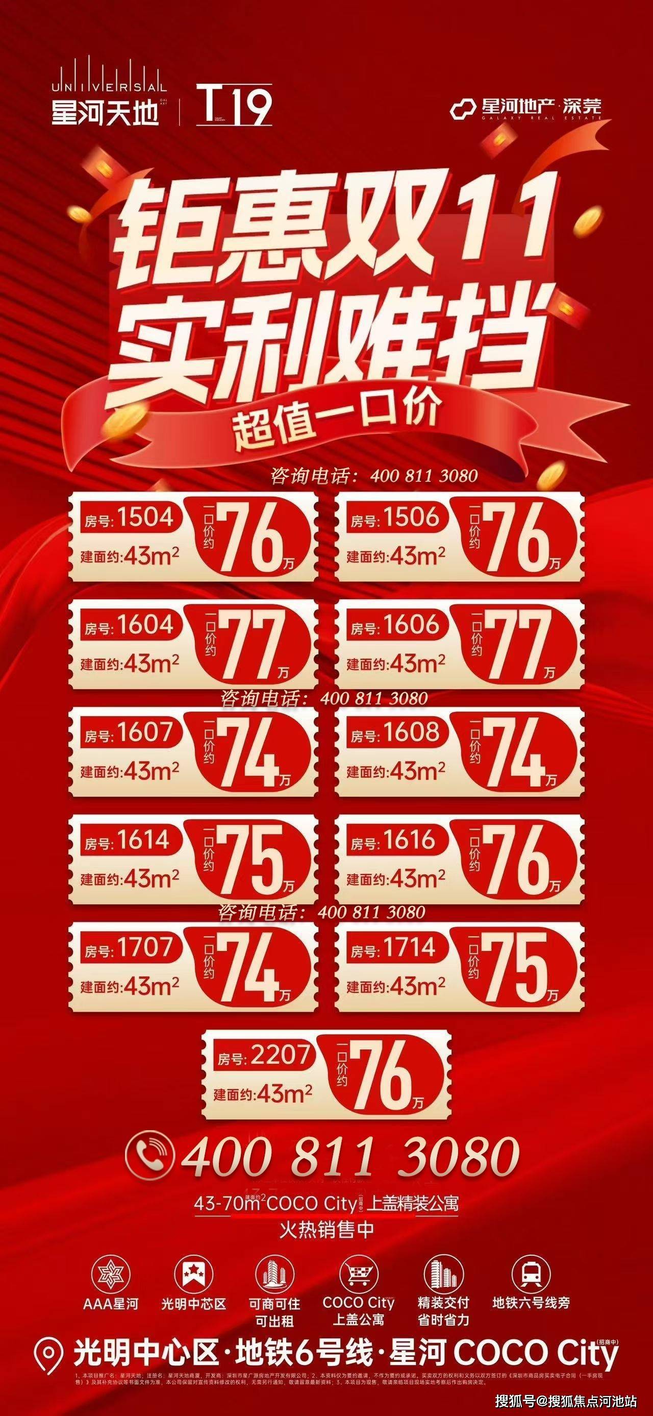 建面约43-70㎡星河COCO City(招商中)上盖精装公寓