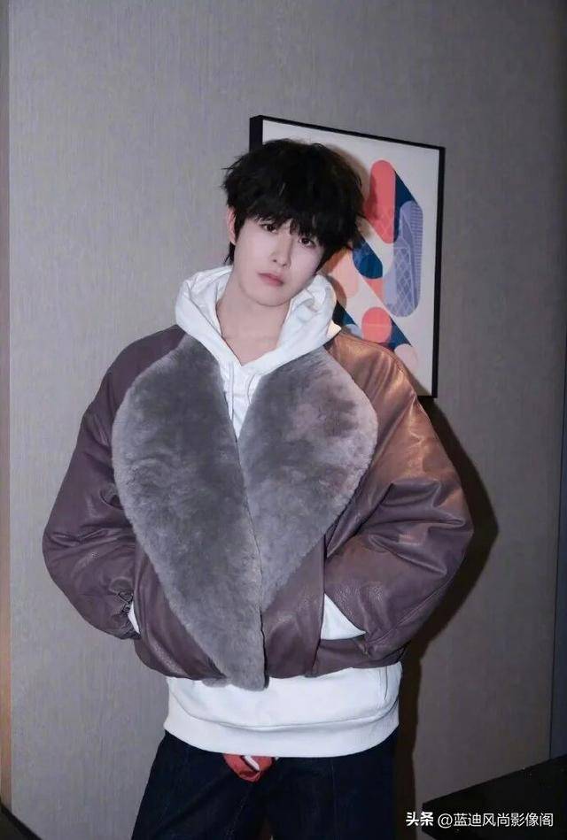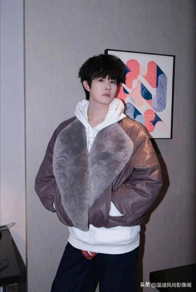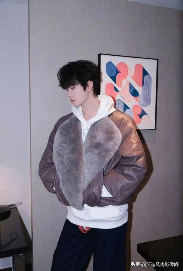 内搭的白色卫衣是少年感的灵魂所在,干净的纯白中和了灰色皮衣的冷调,柔软的棉感面料与皮革、皮毛形成三重材质碰撞,卫衣的休闲随性弱化了皮衣的先锋感,让整体造型更贴合私服的松弛氛围。领口自然露出的卫衣边,简单细节就勾勒出少年的鲜活,没有刻意扮酷,只有浑然天成的少年气。