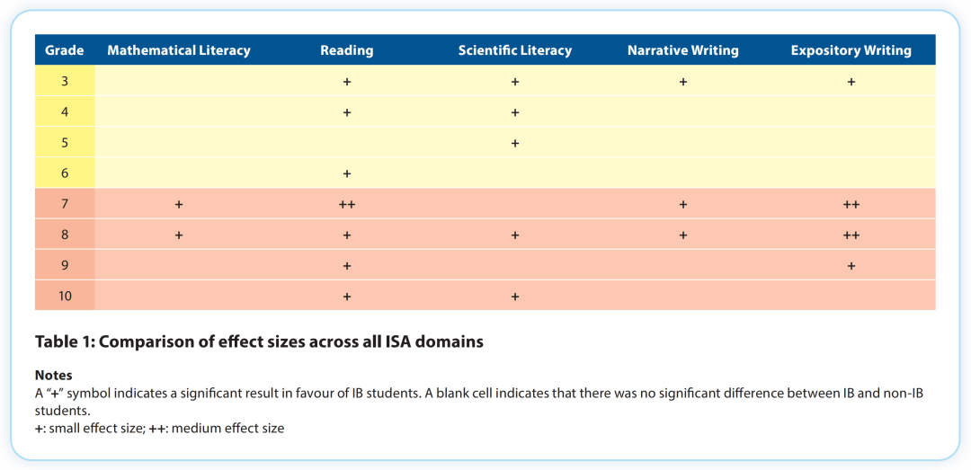 • IB学生在阅读领域表现尤为突出,在几乎所有年级都超越了非IB学生。