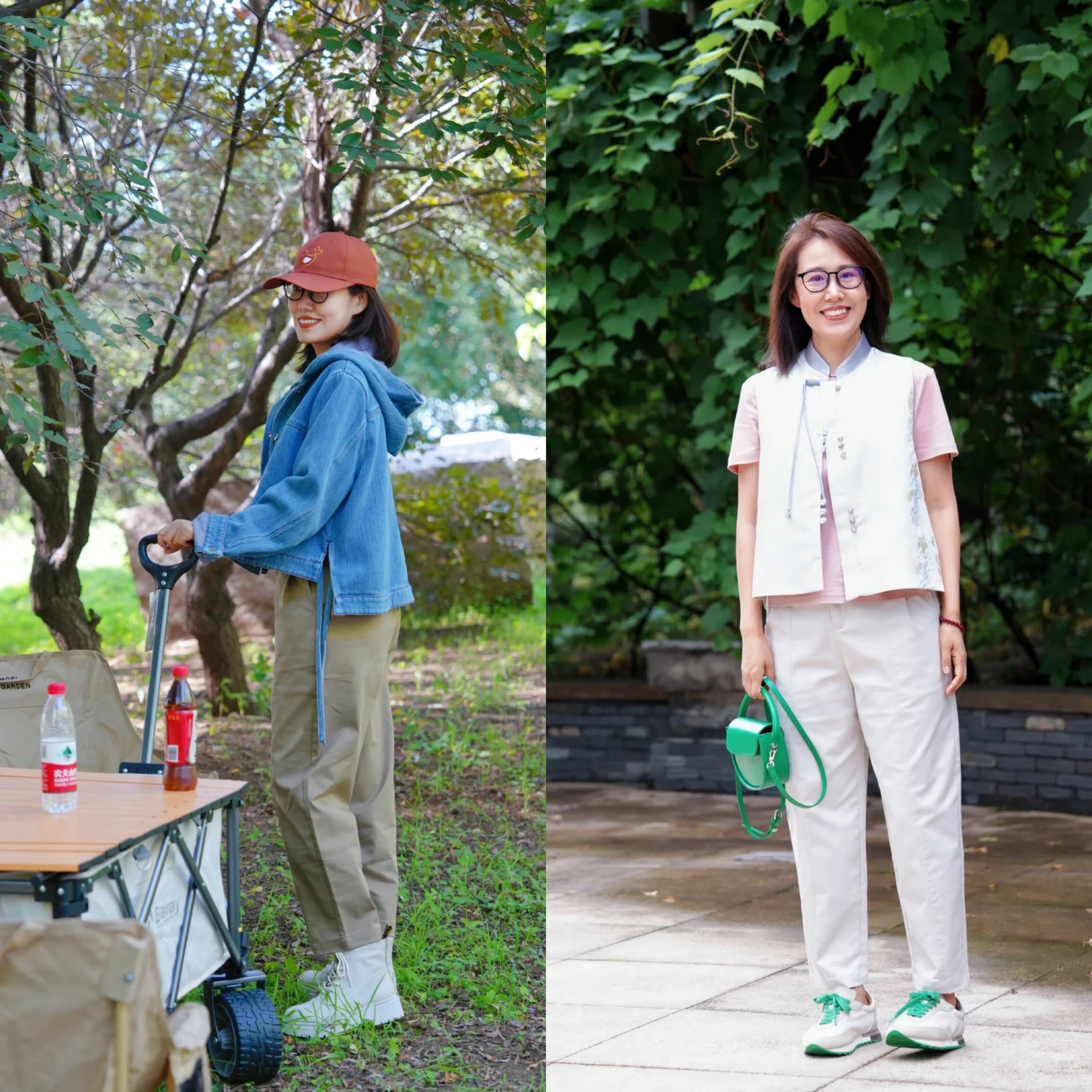 最后,想要造型更时髦减龄,可以尝试马甲搭配,比如轻薄款的羽绒马甲叠穿衬衫或者卫衣,都是超级时髦又减龄的春日造型哦!尤其适合50+的大龄女性。