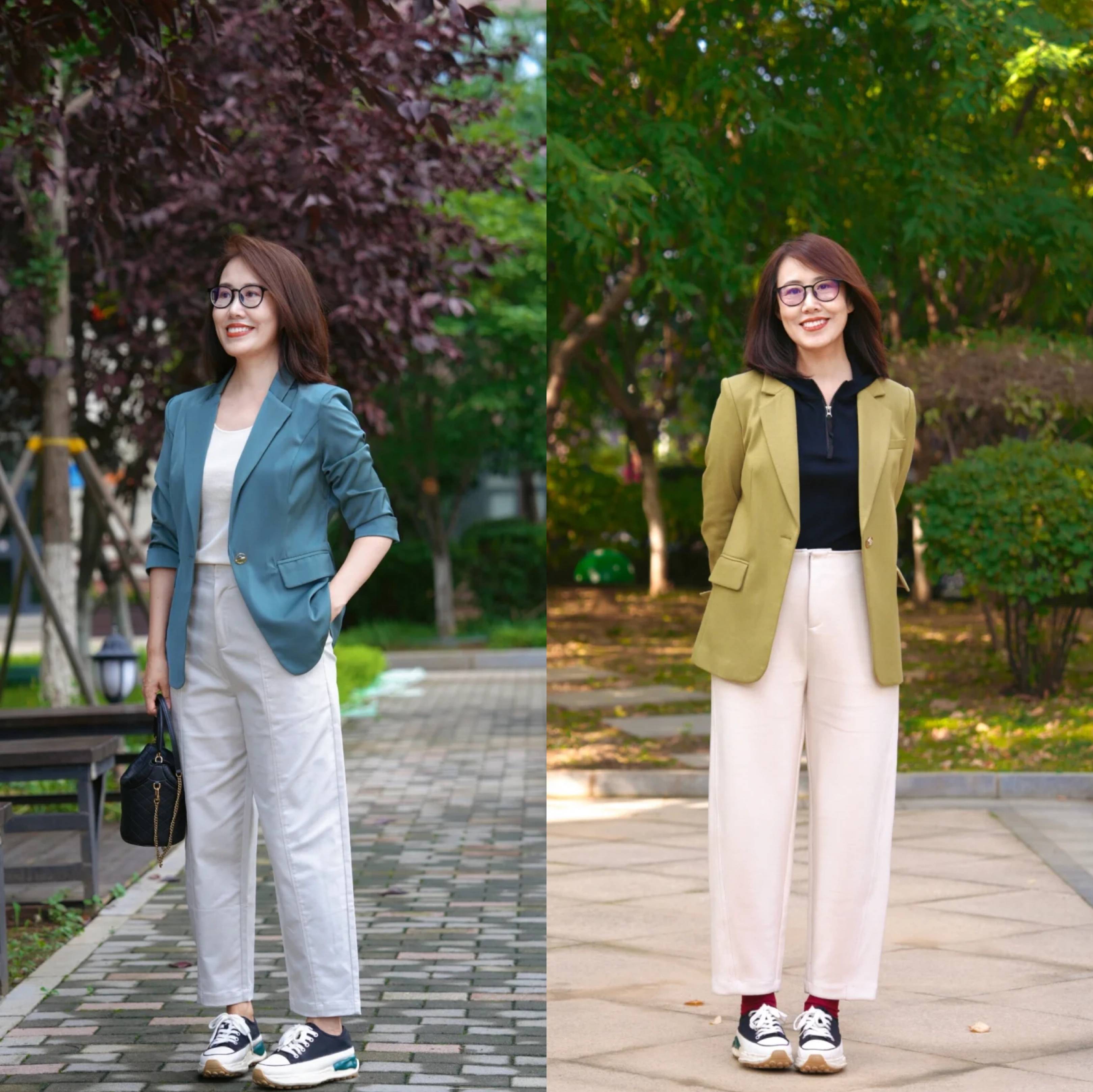小西装是没有什么年龄限制的外套,尤其适合春季搭配,早春小西装穿搭秘籍:选低饱和度彩色系更显高级,高腰烟管裤选择九分长度露脚踝,搭配尖头乐福鞋延伸腿长,搭配运动鞋更休闲舒适,轻松打造知性优雅的通勤风。